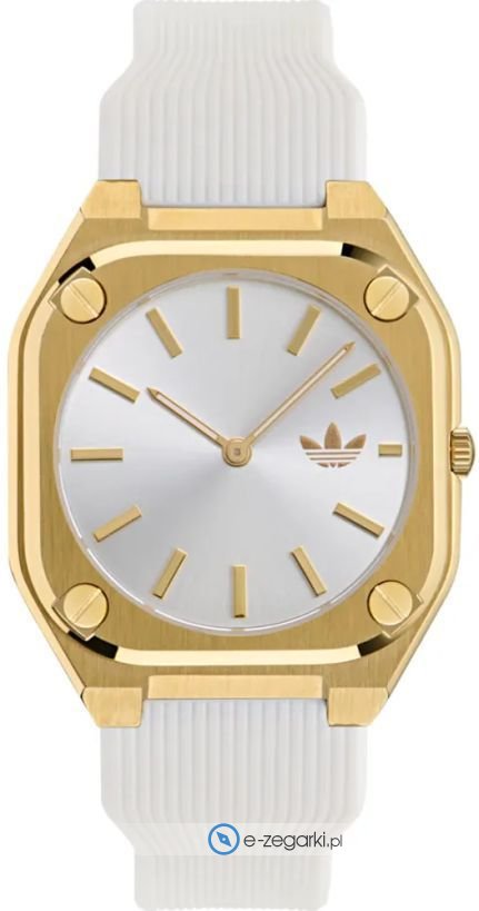 Zegarek damski AOFH24003 marki Adidas to idealna propozycja dla ludzi ceniących sobie dbałość o szczegóły a także bezawaryjne funkcjonowanie mechanizmów. Tarcza zegarka jest w kolorze srebrnym. Zegarek ten pokazuje godzinę w formacie analogowym dzięki czemu odczyt jest bezproblemowy. Koperta została ozdobiona kolorem złotym szeroka jest na 39 mm oraz ma grubość 6 mm.