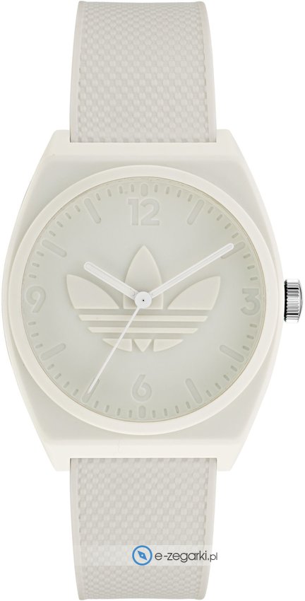 Model AOST22035 marki Adidas to gustowny zegarek naręczny damski, który posiada pomysłowe rozwiązania i funkcje. Cyferblat zegarka jest w kolorze białym. Zaprezentowana metodą analogową bieżąca godzina jest czytelna i prosta do odczytania. Koperta została pokryta kolorem białym szeroka jest na 38 mm oraz ma grubość 10 mm.