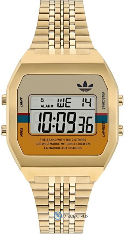 Zegarek damski AOST23555 marki Adidas to idealne połączenie funkcjonalności i ciekawego designu. Tarcza zegarka jest w kolorze beżowym. Aktualna godzina zaprezentowana jest w sposób cyfrowy co intuicyjnie pozwala ją odczytać. Koperta w odcieniach koloru złotego szeroka jest na 36 mm oraz ma grubość 10 mm.