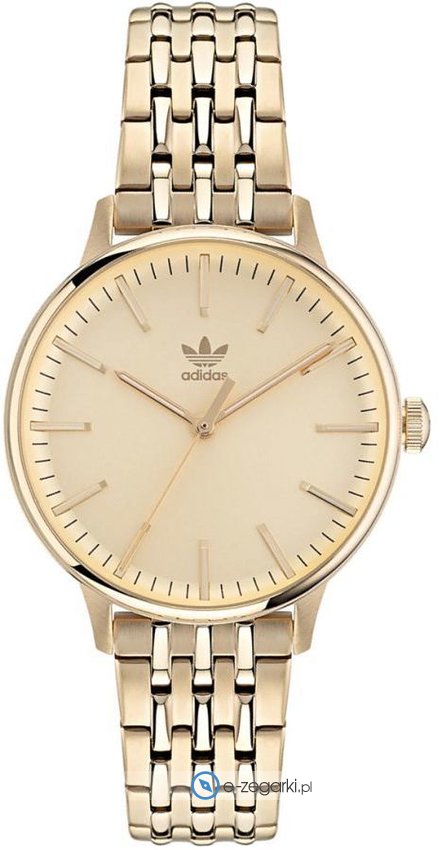 Damski zegarek Adidas AOSY22066 to zegarek, który dzięki swemu wzornictwu zawsze będzie prezentował się dobrze. Tarcza zegarka jest w kolorze złotym. Pokazana metodą analogową aktualna godzina jest czytelna i szybka do odczytania. Koperta została ozdobiona kolorem złotym szeroka jest na 35 mm oraz ma grubość 8 mm - w kształcie okrągłym.