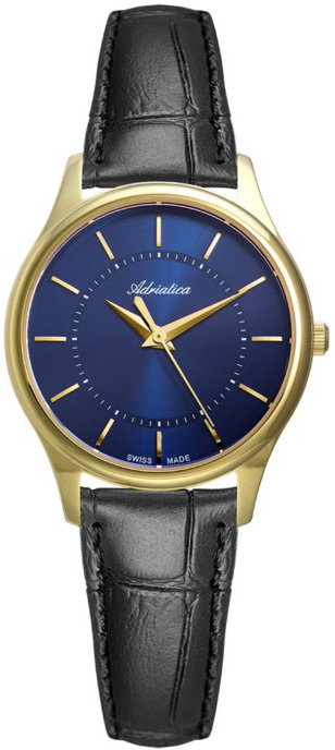 Damski zegarek Adriatica A3179.1215Q to zegarek, który dzięki swemu wzornictwu zawsze będzie prezentował się dobrze. Wysokiej trwałości tarczę zegarka pokryto niebieskim kolorem. Zegarek ten prezentuje godzinę w formacie analogowym dzięki temu odczyt jest bezproblemowy. Koperta jest w kolorze złotym szeroka jest na 30 mm oraz ma grubość 7 mm - posiada okrągły kształt.