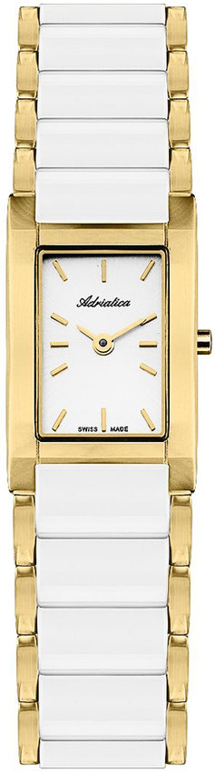 Zegarek damski A3396.D113Q marki Adriatica to ciekawa propozycja dla ludzi ceniących sobie dbałość o detale a także bezproblemowe działanie mechanizmów. Wysokiej jakości tarczę zegarka pokryto białym kolorem. Pokazana metodą analogową bieżąca godzina jest czytelna i łatwa do odczytania. Koperta w barwach koloru złotego szeroka jest na 17 mm oraz ma grubość 7 mm - charakteryzuje się prostokątnym kształtem.