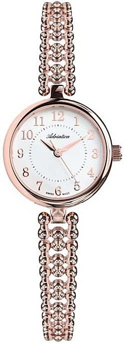 Zegarek damski A3474.9123Q marki Adriatica to ciekawa propozycja dla ludzi ceniących sobie dbałość o szczegóły jak również bezawaryjne funkcjonowanie mechanizmów. Styl zapewnia wysokiej jakości cyferblat w kolorze białym. Zegarek ten prezentuje godzinę w formacie analogowym dzięki czemu odczyt jest intuicyjny. Koperta jest pokryta kolorem różowo złotym szeroka jest na 26 mm oraz ma grubość 7 mm - posiada okrągły kształt.