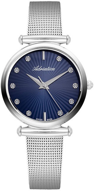 Model A3518.5195Q marki Adriatica to stylowy zegarek naręczny damski, który jest wyposażony w pomysłowe rozwiązania i funkcje. Atrakcyjną konstrukcję zegarka osiągnięto dzięki tarczy w kolorze niebieskim. Zaprezentowana metodą analogową bieżąca godzina jest czytelna i szybka do sprawdzenia. Koperta została pokryta kolorem srebrnym szeroka jest na 33 mm oraz ma grubość 8 mm - w kształcie okrągłym.