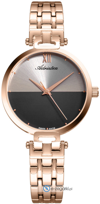 Model A3526.9187Q marki Adriatica to stylowy zegarek naręczny damski, który posiada ciekawe rozwiązania oraz funkcje. Wysokiej jakości cyferblat zegarka ozdobiono szarym kolorem. Godzina prezentowana jest w sposób analogowy co bez trudu pozwala ją odczytać. Koperta została ozdobiona kolorem różowo złotym szeroka jest na 37 mm oraz ma grubość 8 mm - cechuje się okrągłym kształtem.