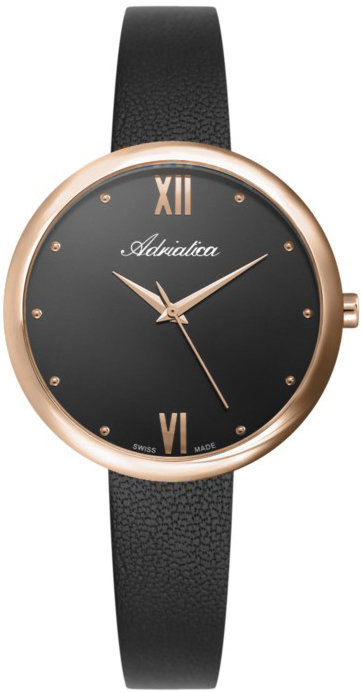 Model A3632.R284Q marki Adriatica to elegancki zegarek naręczny damski, który posiada ciekawe rozwiązania i funkcje. Cyferblat zegarka jest w kolorze czarnym. Godzina pokazywana jest w sposób analogowy co intuicyjnie pozwala ją odczytać. Koperta w barwach koloru różowo złotego szeroka jest na 37 mm oraz ma grubość 8 mm - charakteryzuje się okrągłym kształtem.