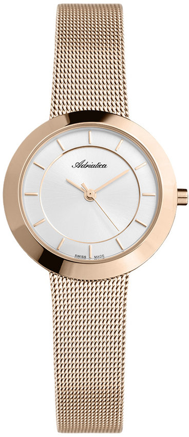 Zegarek damski A3645.9113Q marki Adriatica to idealna propozycja dla osób ceniących sobie dbałość o detale jak również bezawaryjne działanie mechanizmów. Charakterystyczny wygląd czasomierza osiągnięto m.in. poprzez tarczę w kolorze srebrnym. Zegarek ten pokazuje aktualny czas w formacie analogowym dzięki czemu odczyt jest bardzo łatwy. Koperta w odcieniach koloru różowo złotego szeroka jest na 30 mm oraz ma grubość 8 mm - ma okrągły kształt.