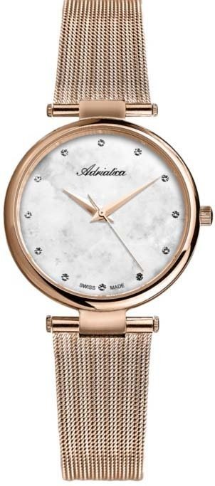 Damski zegarek Adriatica A3689.914FQ to zegarek, który dzięki swemu wzornictwu zawsze będzie prezentował się dobrze. Styl zapewnia wysokiej jakości tarcza w kolorze białym. Zegarek ten prezentuje godzinę w formacie analogowym dzięki czemu odczyt jest bezproblemowy. Koperta jest w kolorze różowo złotym szeroka jest na 33 mm oraz ma grubość 7 mm - cechuje się okrągłym kształtem.