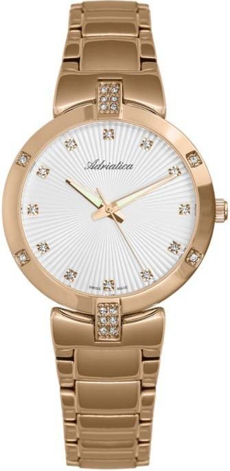 Model A3696.9143QZ marki Adriatica to stylowy zegarek naręczny damski, który posiada ciekawe rozwiązania oraz funkcje. Nieschematyczny wygląd czasomierza uzyskano m.in. poprzez cyferblat w kolorze białym. Pokazana metodą analogową bieżąca godzina jest czytelna i prosta do sprawdzenia. Koperta w odcieniach koloru różowo złotego szeroka jest na 35 mm oraz ma grubość 7 mm - cechuje się okrągłym kształtem.