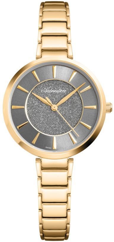 Model A3752.1117Q marki Adriatica to elegancki zegarek naręczny damski, który wyposażono w pomysłowe rozwiązania oraz funkcje. Ciekawą budowę czasomierza osiągnięto z pomocą tarczy w kolorze szarym. Pokazana metodą analogową bieżąca godzina jest czytelna i łatwa do odczytania. Koperta w barwach koloru złotego szeroka jest na 32 mm oraz ma grubość 7 mm - posiada okrągły kształt.