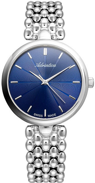 Damski zegarek Adriatica A3770.5115Q to zegarek, który dzięki swemu wzornictwu zawsze będzie prezentował się dobrze. Ciekawy wygląd zegarka osiągnięto również dzięki tarczy w kolorze niebieskim. Pokazana metodą analogową bieżąca godzina jest czytelna i szybka do odczytania. Koperta jest ozdobiona kolorem srebrnym szeroka jest na 36 mm oraz ma grubość 8 mm - w kształcie okrągłym.
