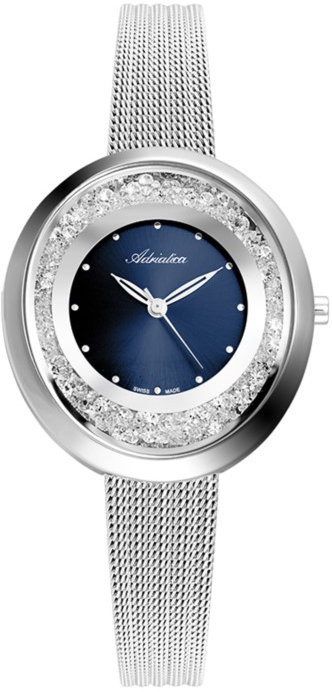 Model A3771.5145QZ marki Adriatica to stylowy zegarek naręczny damski, który posiada ciekawe rozwiązania i funkcje. Styl zapewnia wysokiej klasy tarcza w kolorze niebieskim. Zegarek ten pokazuje aktualny czas w formacie analogowym dzięki czemu odczyt jest bezproblemowy. Koperta jest ozdobiona kolorem srebrnym szeroka jest na 33 mm oraz ma grubość 8 mm - posiada owalny kształt.