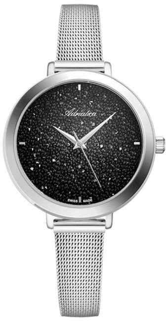 Model A3787.5114Q marki Adriatica to gustowny zegarek naręczny damski, który jest wyposażony w ciekawe rozwiązania oraz funkcje. Ciekawą konstrukcję czasomierza osiągnięto dzięki tarczy w kolorze czarnym. Godzina przedstawiona jest w sposób analogowy co intuicyjnie pozwala ją odczytać. Koperta jest w kolorze srebrnym szeroka jest na 36 mm oraz ma grubość 7 mm - ma okrągły kształt.