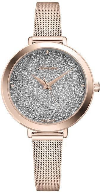 Zegarek damski A3787.9113Q marki Adriatica to dobra propozycja dla osób ceniących sobie dbałość o szczegóły a także sprawne działanie mechanizmów. Niestereotypowy wygląd zegarka osiągnięto również dzięki tarczy w kolorze srebrnym. Pokazana metodą analogową aktualna godzina jest czytelna i szybka do odczytania. Koperta w barwach koloru różowo złotego szeroka jest na 36 mm oraz ma grubość 7 mm - cechuje się okrągłym kształtem.