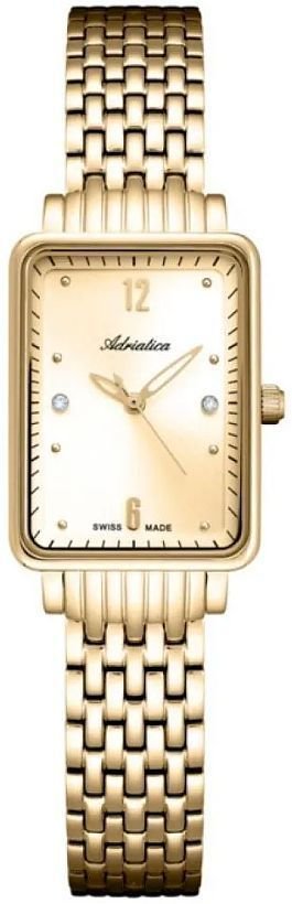 Zegarek damski A3829.1171Q marki Adriatica to dobra pozycja dla ludzi ceniących sobie dbałość o detale jak również bezproblemowe zachowanie mechanizmów. Niebanalną stylistykę czasomierza uzyskano z pomocą tarczy w kolorze złotym. Zegarek ten prezentuje godzinę w formacie analogowym dzięki czemu odczyt jest bezproblemowy. Koperta w odcieniach koloru złotego szeroka jest na 29 mm oraz ma grubość 7 mm - w kształcie prostokątnym.