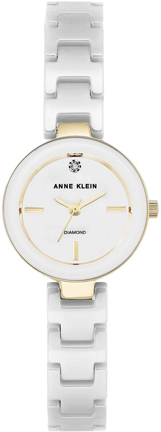 Zegarek damski AK-2660WTGB marki Anne Klein to dobre połączenie funkcjonalności oraz modnego designu. Zaprezentowana metodą analogową bieżąca godzina jest czytelna i łatwa do odczytania. Koperta jest pokryta kolorem białym szeroka jest na 24 mm oraz ma grubość 8 mm - w kształcie okrągłym.