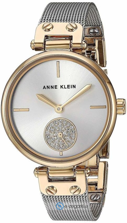 Zegarek damski AK-3001SVTT marki Anne Klein to idealne połączenie funkcjonalności oraz modnego wzornictwa. Aktualna godzina pokazywana jest w sposób analogowy co intuicyjnie pozwala ją odczytać. Koperta szeroka jest na 34 mm oraz ma grubość 9 mm - w kształcie okrągłym.