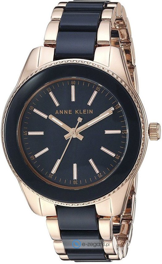 Damski zegarek Anne Klein AK-3214NVRG to zegarek, który dzięki swemu wzornictwu zawsze będzie prezentował się dobrze. Zegarek ten pokazuje aktualny czas w formacie analogowym dzięki czemu odczyt jest intuicyjny. Koperta szeroka jest na 37 mm oraz ma grubość 10 mm - ma okrągły kształt.