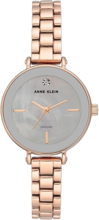 Zegarek damski AK-3386LGRG marki Anne Klein to stylowe połączenie funkcjonalności i ciekawego designu. Wysokiej trwałości tarczę zegarka ozdobiono perłowym kolorem. Godzina prezentowana jest w sposób analogowy co bez trudu pozwala ją odczytać. Koperta szeroka jest na 30 mm oraz ma grubość 8 mm - cechuje się okrągłym kształtem.