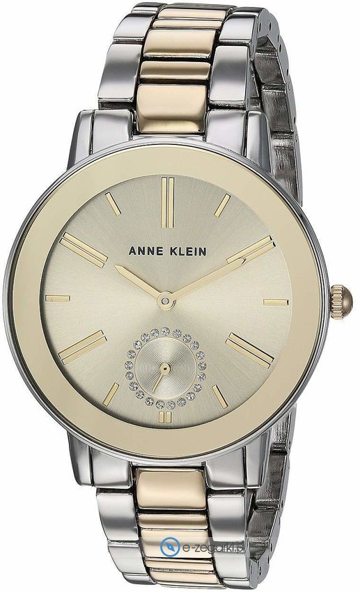 Zegarek damski AK-3485CHTT marki Anne Klein to idealna propozycja dla ludzi ceniących sobie dbałość o detale a także sprawne funkcjonowanie mechanizmów. Stylu dodaje wysokiej klasy tarcza w kolorze szampańskim. Zaprezentowana metodą analogową aktualna godzina jest czytelna i szybka do sprawdzenia. Koperta została ozdobiona kolorem srebrno złotym szeroka jest na 36 mm oraz ma grubość 8,5 mm - wyróżnia się okrągłym kształtem.