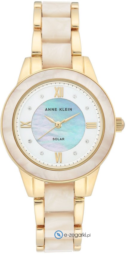 Damski zegarek Anne Klein AK-3610GPWT to zegarek, który dzięki swemu wzornictwu zawsze będzie prezentował się dobrze. Ciekawą stylistykę zegarka uzyskano z pomocą tarczy w kolorze białym. Zegarek ten prezentuje godzinę w formacie analogowym dzięki czemu odczyt jest bezproblemowy. Koperta jest w kolorze złotym szeroka jest na 34 mm oraz ma grubość 8 mm - charakteryzuje się okrągłym kształtem.