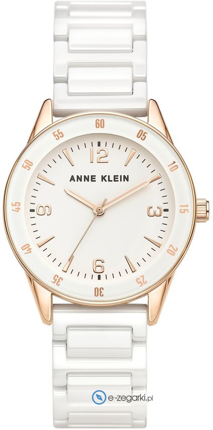 Zegarek damski AK-3658RGWT marki Anne Klein to dobre połączenie funkcjonalności a także modnego designu. Model ten w gamie pozostałych zegarków tego producenta występuje w kolekcji Festina Ceramic. Niebanalną konstrukcję zegarka uzyskano z pomocą tarczy w kolorze białym. Aktualna godzina prezentowana jest w sposób analogowy co niezmiernie łatwo pozwala ją odczytać. Koperta szeroka jest na 33 mm oraz ma grubość 8 mm - wyróżnia się okrągłym kształtem.