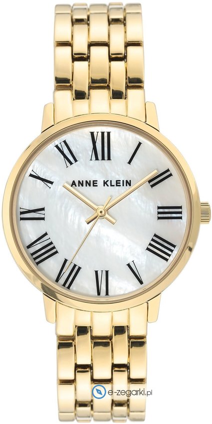 Zegarek damski AK-3680MPGB marki Anne Klein to stylowe połączenie funkcjonalności i ciekawego designu. Charakterystyczną budowę czasomierza osiągnięto z pomocą tarczy w kolorze perłowym. Zegarek ten pokazuje godzinę w formacie analogowym dzięki czemu odczyt jest bezproblemowy. Koperta jest pokryta kolorem złotym szeroka jest na 34 mm oraz ma grubość 8 mm - w kształcie okrągłym.