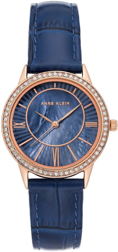 Zegarek damski AK-3688RGNV marki Anne Klein to dobre połączenie funkcjonalności a także ciekawego designu. Ciekawy wygląd czasomierza osiągnięto również dzięki tarczy w kolorze niebieskim. Zegarek ten prezentuje aktualny czas w formacie analogowym dzięki czemu odczyt jest intuicyjny. Koperta szeroka jest na 32 mm oraz ma grubość 8 mm - cechuje się okrągłym kształtem.