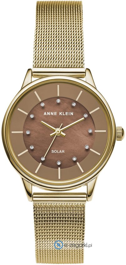 Model AK-3722TMGB marki Anne Klein to stylowy zegarek naręczny damski, który wyposażono w pomysłowe rozwiązania oraz funkcje. Ciekawą stylistykę zegarka uzyskano z pomocą tarczy w kolorze brązowym. Zegarek ten pokazuje aktualny czas w formacie analogowym dzięki temu odczyt jest bardzo łatwy. Koperta została ozdobiona kolorem złotym szeroka jest na 32 mm oraz ma grubość 8 mm - charakteryzuje się okrągłym kształtem.