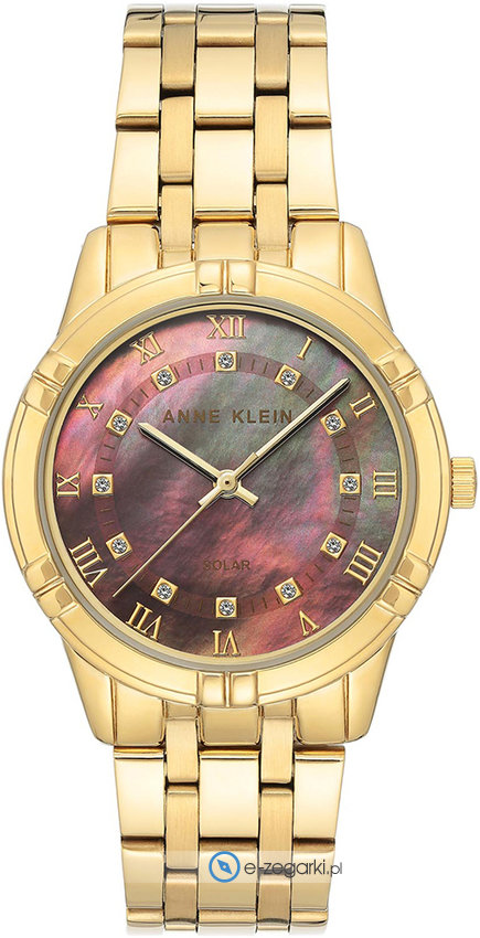 Zegarek damski AK-3768BNGB marki Anne Klein to dobra pozycja dla ludzi ceniących sobie dbałość o detale jak również bezawaryjne działanie mechanizmów. Ciekawy wygląd zegarka uzyskano także dzięki tarczy w kolorze perłowym. Zaprezentowana metodą analogową aktualna godzina jest czytelna i szybka do odczytania. Koperta w odcieniach koloru złotego szeroka jest na 34 mm - posiada okrągły kształt.