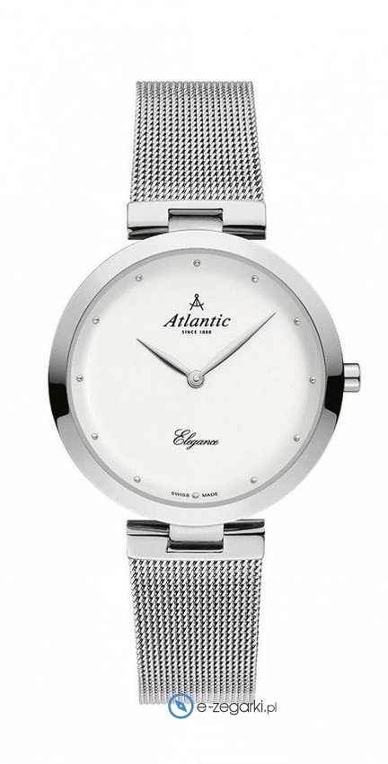 Zegarek damski 29036.41.21MB marki Atlantic to stylowe połączenie funkcjonalności a także modnego designu. Model ten w gamie pozostałych zegarków tego producenta występuje w serii Atlantic Elegance. Wysokiej jakości cyferblat zegarka ozdobiono białym kolorem. Zaprezentowana metodą analogową aktualna godzina jest czytelna i prosta do odczytania. Koperta jest w kolorze srebrnym szeroka jest na 34 mm oraz ma grubość 6 mm - wyróżnia się okrągłym kształtem.