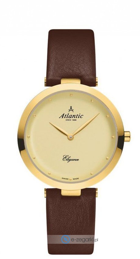 Zegarek 29036.45.31L marki Atlantic to stylowy zegarek naręczny damski, który posiada pomysłowe rozwiązania i funkcje. Model ten należy do serii Atlantic Elegance. Cyferblat zegarka w kolorze złotym. Zegarek ten prezentuje godzinę w formacie analogowym dzięki czemu odczyt jest bezproblemowy. Koperta jest ozdobiona kolorem złotym szeroka jest na 34 mm oraz ma grubość 7 mm - charakteryzuje się okrągłym kształtem.