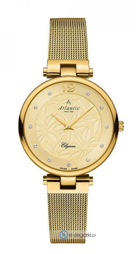Atlantic 29037.45.31MB - damski zegarek kierowany dla osób szukających zegarka z rodziny Atlantic Elegance. Styl zapewnia wysokiej klasy cyferblat w kolorze złotym. Zegarek ten pokazuje godzinę w formacie analogowym dzięki czemu odczyt jest bezproblemowy. Koperta w barwach koloru złotego szeroka jest na 33 mm oraz ma grubość 8 mm - wyróżnia się okrągłym kształtem.