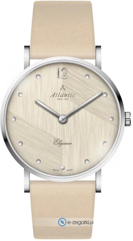 Damski zegarek Atlantic 29043.41.97 to zegarek, który dzięki swemu wzornictwu zawsze będzie prezentował się dobrze. Tarcza zegarka w kolorze jasnym. Zegarek ten pokazuje godzinę w formacie analogowym dzięki czemu odczyt jest bardzo łatwy. Koperta jest w kolorze srebrnym szeroka jest na 35 mm oraz ma grubość 8 mm - w kształcie okrągłym.