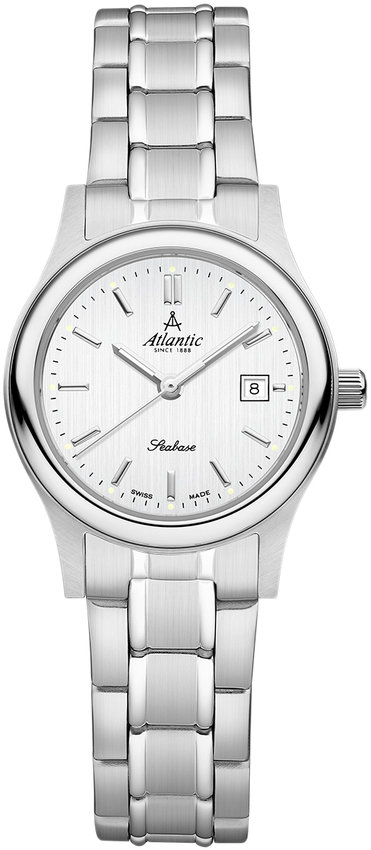 Zegarek damski 20348.41.21 marki Atlantic to dobre połączenie funkcjonalności oraz modnego wzornictwa. Model ten występuje w kolekcji Atlantic Seabase. Atrakcyjną stylistykę czasomierza uzyskano z pomocą tarczy w kolorze srebrnym. Zegarek ten pokazuje aktualny czas w formacie analogowym dzięki temu odczyt jest intuicyjny. Koperta jest w kolorze srebrnym szeroka jest na 27 mm oraz ma grubość 7 mm - wyróżnia się okrągłym kształtem.