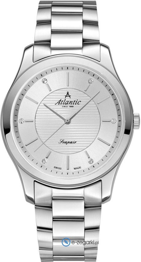 Damski zegarek 20335.41.21 z serii Atlantic Seapair marki Atlantic to połączenie estetyki i pomysłowych funkcji. Tarcza zegarka w kolorze srebrnym. Zegarek ten pokazuje aktualny czas w formacie analogowym dzięki temu odczyt jest bardzo łatwy. Koperta w barwach koloru srebrnego szeroka jest na 28 mm oraz ma grubość 8 mm - w kształcie okrągłym.