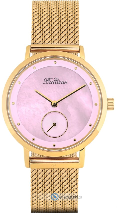 Model BLT-BALNSGP marki Balticus to gustowny zegarek naręczny damski, który posiada ciekawe rozwiązania i funkcje. Wysokiej trwałości cyferblat zegarka ozdobiono perłowym kolorem. Aktualna godzina przedstawiona jest w sposób analogowy co niezmiernie łatwo pozwala ją odczytać. Koperta jest ozdobiona kolorem złotym szeroka jest na 34 mm oraz ma grubość 8 mm - w kształcie okrągłym.