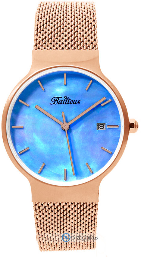 Balticus BLT-SKYRBL - damski zegarek kierowany dla osób szukających zegarka z serii Balticus Sky. Stylu nadaje wysokiej klasy cyferblat w kolorze niebieskim. Aktualna godzina zaprezentowana jest w sposób analogowy co niezmiernie łatwo pozwala ją odczytać. Koperta szeroka jest na 34 mm oraz ma grubość 8 mm - w kształcie okrągłym.