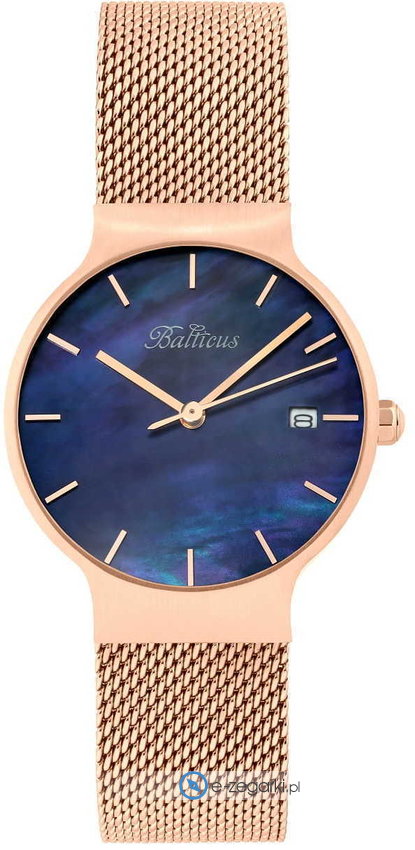 Zegarek damski BLT-SKYRNBL marki Balticus to dobre połączenie funkcjonalności i ciekawego designu. Model ten zalicza się do kolekcji Balticus Sky. Atrakcyjny wygląd zegarka osiągnięto m.in. poprzez cyferblat w kolorze granatowym. Godzina pokazywana jest w sposób analogowy co niezmiernie łatwo pozwala ją odczytać. Koperta szeroka jest na 34 mm oraz ma grubość 8 mm - cechuje się okrągłym kształtem.