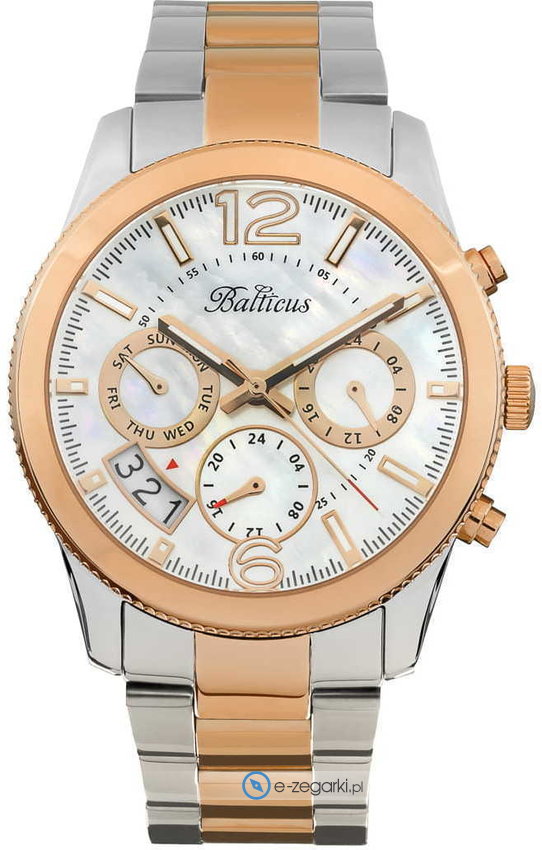 Zegarek damski BLT-VR-SR marki Balticus to dobre połączenie funkcjonalności oraz modnego wzornictwa. Model ten jest z serii Balticus Sky Variety. Atrakcyjną stylistykę czasomierza osiągnięto dzięki tarczy w kolorze jasnym. Zegarek ten pokazuje godzinę w formacie analogowym dzięki temu odczyt jest intuicyjny. Koperta szeroka jest na 38 mm oraz ma grubość 11 mm - wyróżnia się okrągłym kształtem.