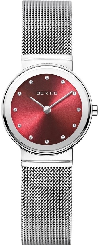 Zegarek damski 10126-003 marki Bering to dobre połączenie funkcjonalności a także modnego designu. Model ten występuje w kolekcji Bering Classic. Charakter zapewnia wysokiej jakości cyferblat w kolorze czerwonym. Zegarek ten pokazuje aktualny czas w formacie analogowym dzięki czemu odczyt jest bezproblemowy. Koperta jest pokryta kolorem srebrnym szeroka jest na 26 mm oraz ma grubość 6 mm - w kształcie okrągłym.