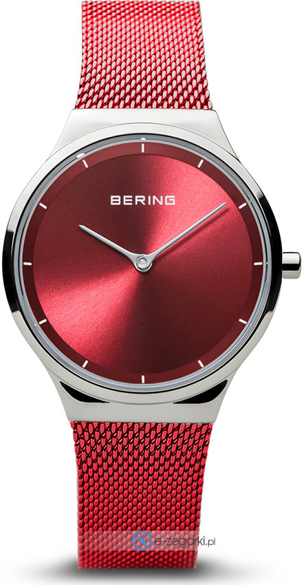 Zegarek damski 12131-303 marki Bering to idealne połączenie funkcjonalności i ciekawego wzornictwa. Model ten zalicza się do serii Bering Classic. Cyferblat zegarka jest w kolorze czerwonym. Zegarek ten prezentuje aktualny czas w formacie analogowym dzięki temu odczyt jest intuicyjny. Koperta jest pokryta kolorem stalowym szeroka jest na 31 mm oraz ma grubość 6 mm - w kształcie okrągłym.