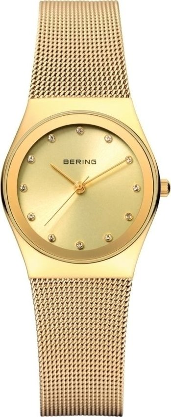 Zegarek damski 12927-333 marki Bering to stylowe połączenie funkcjonalności a także ciekawego designu. Model ten w gamie innych zegarków tego producenta występuje w serii Zegarki Classic. Charakterystyczną konstrukcję zegarka osiągnięto dzięki tarczy w kolorze złotym. Koperta szeroka jest na 27 mm oraz ma grubość 6 mm - cechuje się okrągłym kształtem.