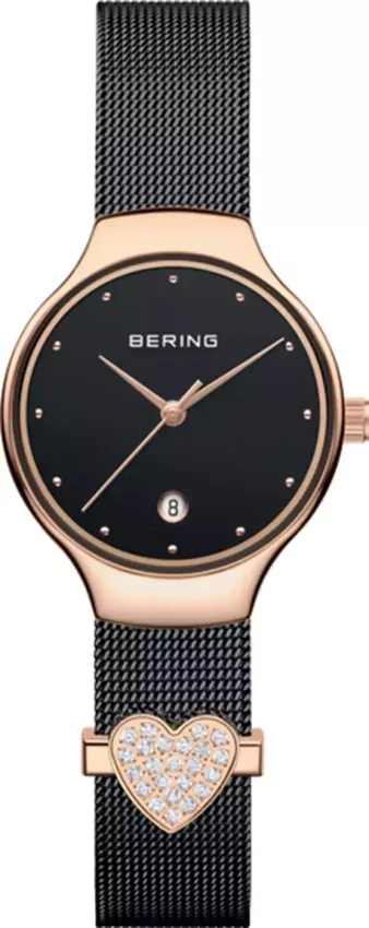 Zegarek damski 13326-262-GWP marki Bering to idealna propozycja dla ludzi ceniących sobie dbałość o detale oraz sprawne funkcjonowanie mechanizmów. Wysokiej jakości tarczę zegarka ozdobiono czarnym kolorem. Zegarek ten prezentuje godzinę w formacie analogowym dzięki temu odczyt jest intuicyjny. Koperta jest pokryta kolorem różowo złotym szeroka jest na 26 mm oraz ma grubość 7 mm - posiada okrągły kształt.