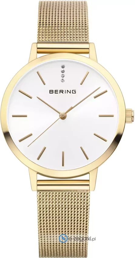Zegarek damski 13434-331 marki Bering to dobre połączenie funkcjonalności i modnego wzornictwa. Charakteru nadaje wysokiej jakości tarcza w kolorze białym. Zegarek ten prezentuje godzinę w formacie analogowym dzięki czemu odczyt jest bezproblemowy. Koperta jest ozdobiona kolorem złotym szeroka jest na 34 mm oraz ma grubość 7 mm - ma okrągły kształt.