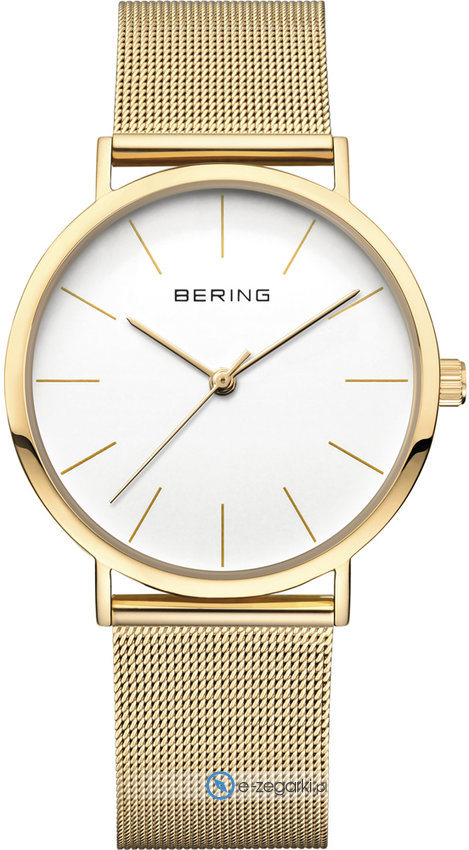 Zegarek damski 13436-334 marki Bering to doskonałe połączenie funkcjonalności i modnego designu. Model ten w gamie innych zegarków tego producenta występuje w serii Bering Classic. Charakteru nadaje wysokiej jakości cyferblat w kolorze białym. Godzina zaprezentowana jest w sposób analogowy co intuicyjnie pozwala ją odczytać. Koperta w barwach koloru złotego szeroka jest na 36 mm oraz ma grubość 9 mm - wyróżnia się okrągłym kształtem. Zegarek dzięki subtelnym wymiarom będzie idealnie prezentował się na damskim nadgarstku.