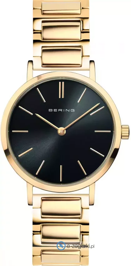 Bering 14129-732 to damski zegarek przeznaczony dla osób szukających zegarka z serii Bering Classic. Niestereotypowy wygląd zegarka osiągnięto m.in. poprzez cyferblat w kolorze czarnym. Aktualna godzina przedstawiona jest w sposób analogowy co niezmiernie łatwo pozwala ją odczytać. Koperta jest ozdobiona kolorem złotym szeroka jest na 29 mm - wyróżnia się okrągłym kształtem.