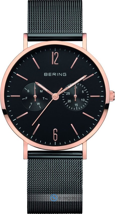 Bering 14236-163 - damski zegarek przeznaczony dla osób szukających zegarka z rodziny Bering Classic. Charakterystyczną stylistykę zegarka osiągnięto z pomocą tarczy w kolorze czarnym. Aktualna godzina prezentowana jest w sposób analogowy co niezmiernie łatwo pozwala ją odczytać. Koperta jest w kolorze różowo złotym szeroka jest na 36 mm oraz ma grubość 6 mm - posiada okrągły kształt.