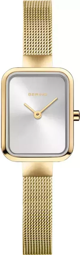 Damski zegarek 14520-330 z serii Bering Classic marki Bering to połączenie stylu oraz ciekawych mechanizmów. Cyferblat zegarka jest w kolorze srebrnym. Zegarek ten prezentuje godzinę w formacie analogowym dzięki temu odczyt jest intuicyjny. Koperta w odcieniach koloru złotego szeroka jest na 20 mm oraz ma grubość 6 mm - w kształcie prostokątnym.