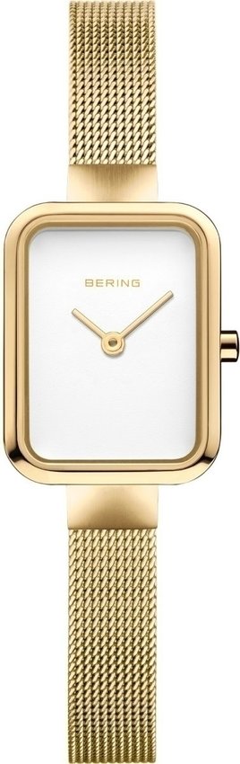 Zegarek damski 14520-334 marki Bering to stylowe połączenie funkcjonalności a także ciekawego designu. Model ten należy do kolekcji Bering Classic. Stylu nadaje wysokiej jakości tarcza w kolorze białym. Zaprezentowana metodą analogową aktualna godzina jest czytelna i szybka do odczytania. Koperta jest w kolorze złotym szeroka jest na 20 mm oraz ma grubość 6 mm - w kształcie prostokątnym.